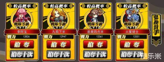 在夺宝界面中,各位勇士也可参照竞技场中对其他相近排名玩家进行挑战,当然挑战是有一定策略的,各位勇士要先行查看备选挑战对手的战斗力是否过于强大,如果比自己站队战斗力高过太多,就先饶他一命,等日后实力强大了再来夺宝。玩家等级达到50级或者VIP等级到达或超过4级,即可解锁10连抢,快速抢夺自己想要的宝物。