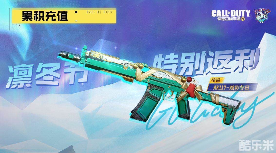 凛冬节累充活动将于12月24日开启!充值达到688软妹币即可获得传说级武器蓝图AK117-炫彩冬日!被精心包裹的枪身,仿佛冬日中的礼物等待送达~