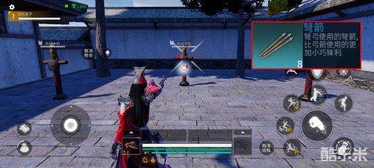 弩弓射程较近伤害也较低,但其优势在于灵活与射速快,弩弓按住瞄准即可快速不断射出弩箭,在敌方惨血想逃跑时可做为快速补刀使用。
