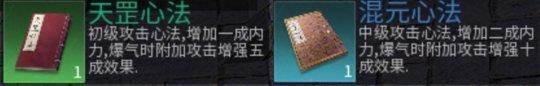防御类心法中,天罡心法为初级心法,混元心法为中级心法。习得初级心法可提供侠客一成内力加成,中级可增加二成内力。暴气后侠客身周气劲为红色,初级可提高侠客五成攻击力,中级心法可提高侠客十成攻击力。