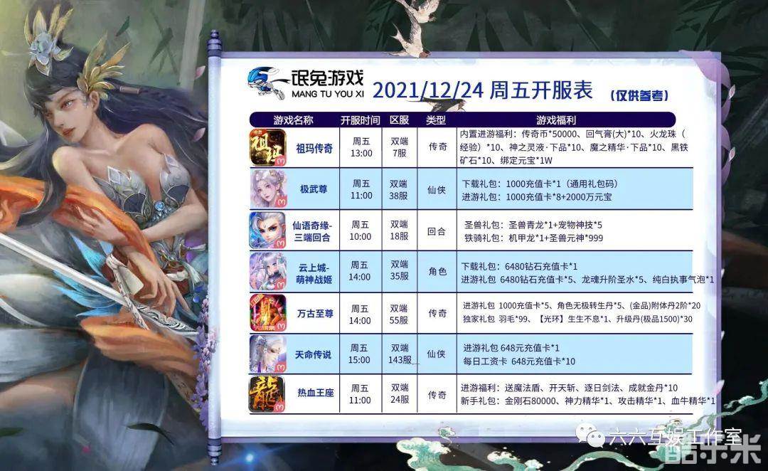 | 热血王座 | 热血25服( 苹果- 安卓) | 2021-12-24 11:00:00 |