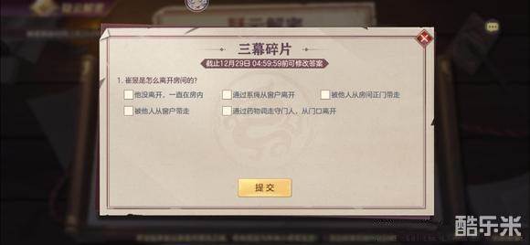 疑云解密三幕碎片答案介绍