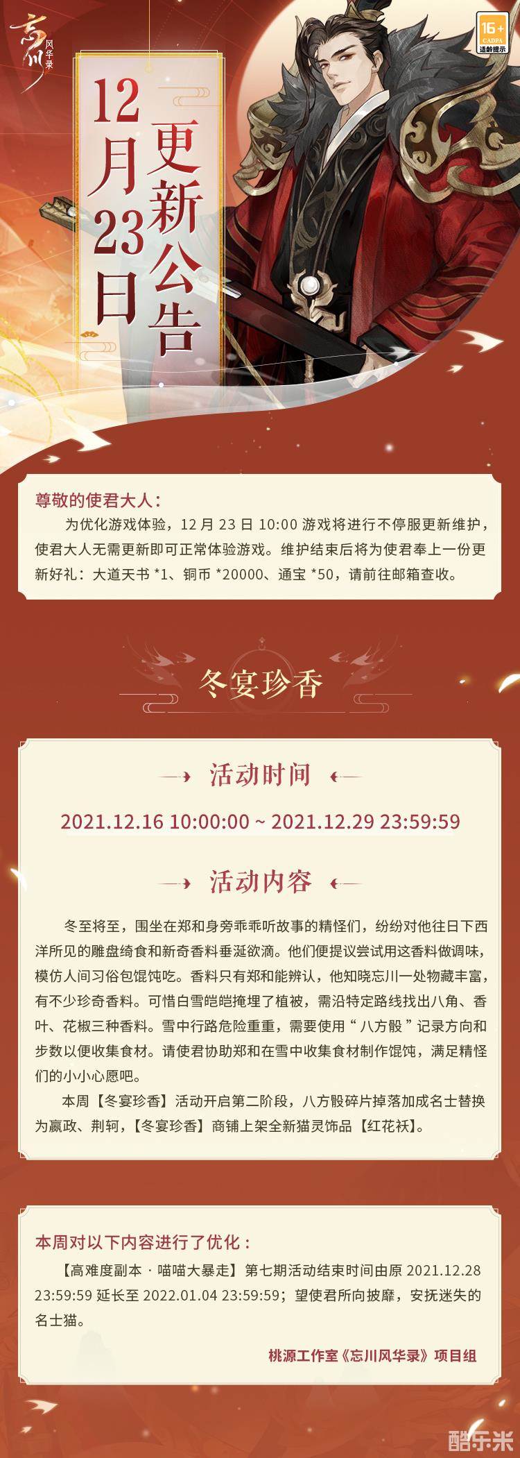 为优化游戏体验,12月23日10:00 游戏将进行不停服更新维护,使君大人无需更新即可正常体验游戏。