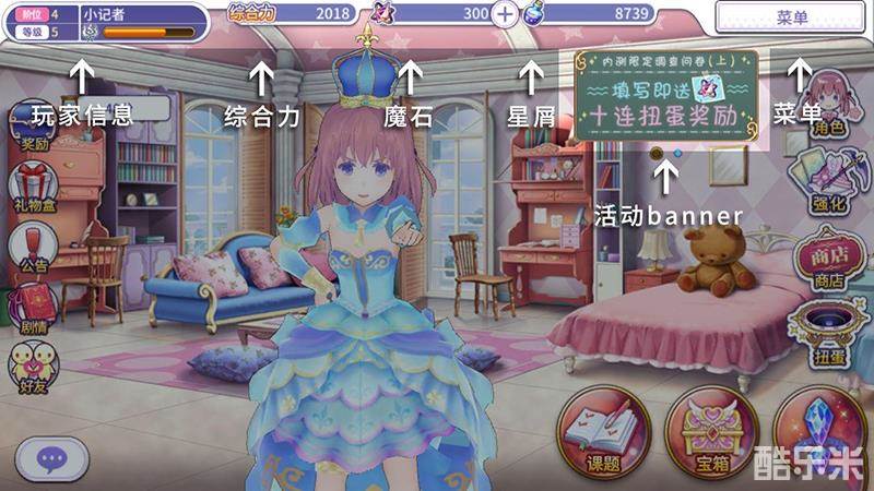 状态栏从左到右分别为玩家信息、综合力、魔石、星屑。
