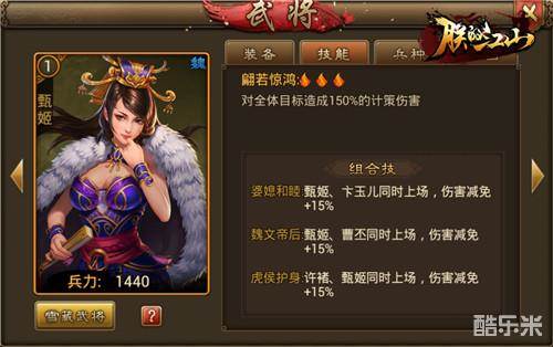 甄姬乃是一名绝色女子,曹植《洛神赋》描述的洛水之神就是甄姬,据闻甄洛生长在世宦之家,不仅美色惊人,而且博览群书、通晓经史,更对朝政的得失、政治的明暗有自己的见解,难怪曹植和曹丕都对其一见倾心。我们假设甄姬的觉醒技能为“洛水之神”:使用技能之后都有概率对一名男性敌人造成魅惑效果,一回合内不能使用技能,并使我方兵力最少的男性武将回复一定兵力。洛神的美色谁能挡得住?