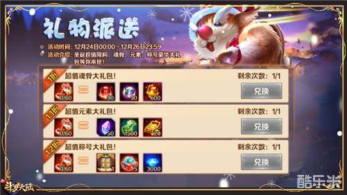 这不,圣诞老人滑着雪橇为大家送礼来啦~超多大礼包1折是不是约等于白送呢?当然是白送啦,毕竟双旦期间登录《新斗罗大陆》会有许多机会获得圣诞袜的,那错过这次机会,真的要等一年喽~
