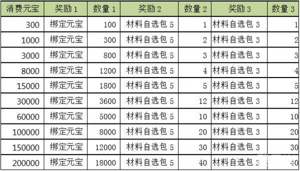 1. 活动期间内,玩家通过游戏进行非绑定元宝消耗,达到指定要求即可领取对应奖励