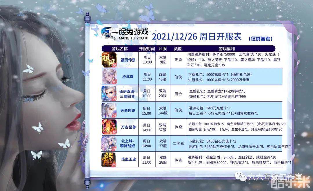 | 仙语奇缘-无限抽 | 天下20区( 苹果- 安卓) | 2021-12-26 10:00:00 |