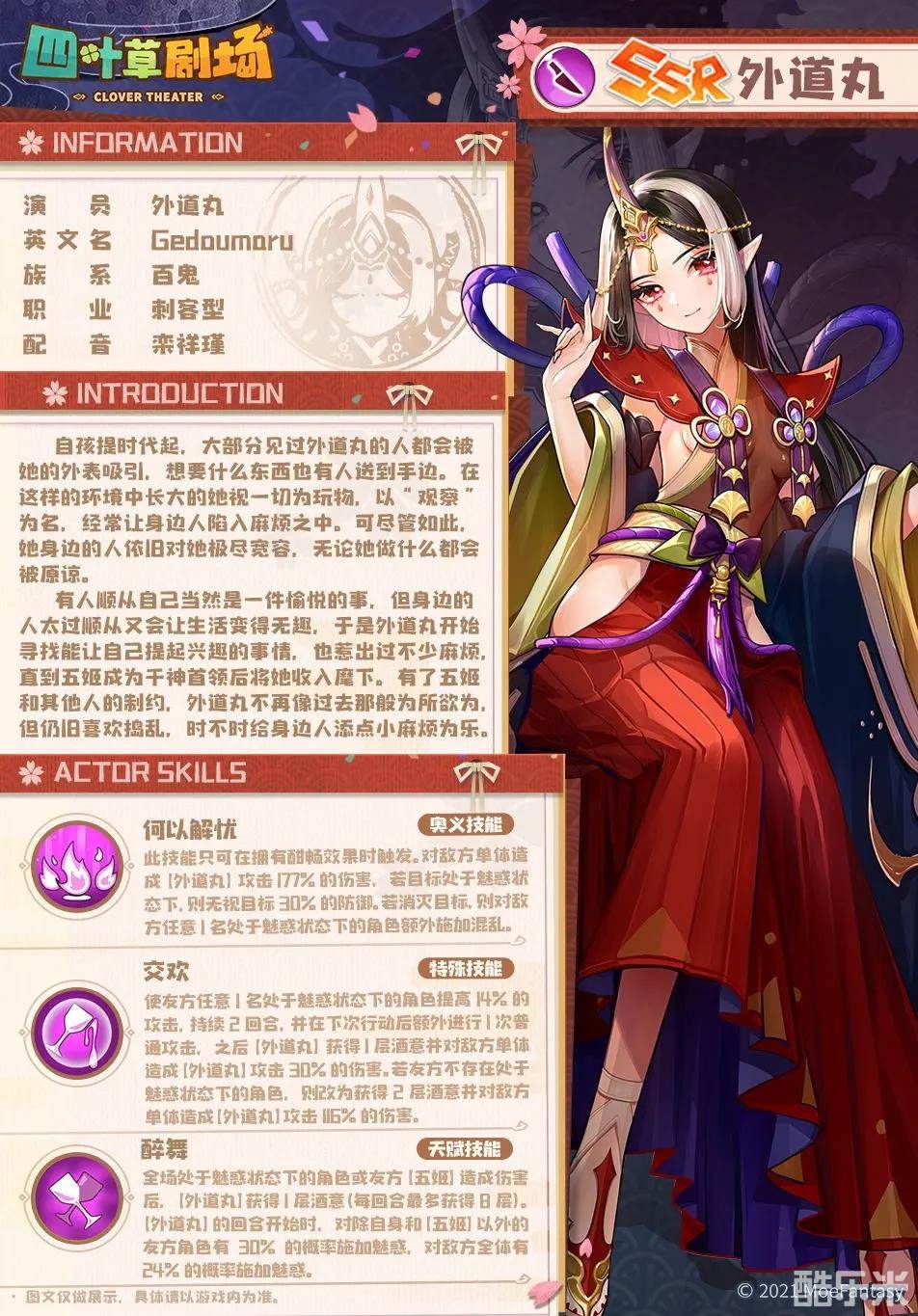 四叶草剧场游戏中的外道丸是新上线的SSR演员,相信有很多小伙伴不是很清楚外道丸怎么样,接下来就让小编给大家带来《四叶草剧场》外道丸介绍,感兴趣的小伙伴一起来看看吧。