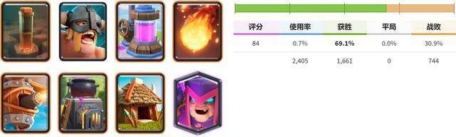 5、玩家在游戏中的高胜率卡组里可以用看出女巫婆婆的出场率很高,胜利场次也很多。