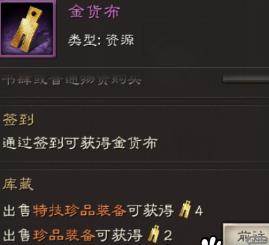 2、出售带特技的珍品装备可以获得4金货布,普通珍品装备可以获得2,携带特技的上品装备可以获得1