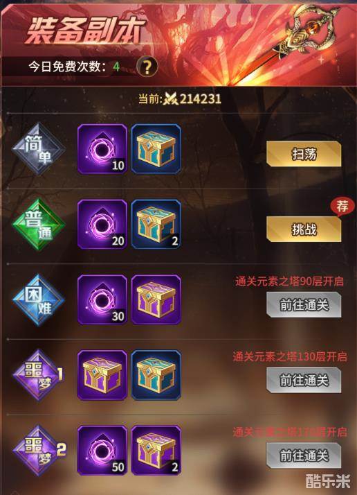 (5)装备副本:主要产出普通和史诗装备的随机礼盒,还有用于装备觉醒的觉醒精华。众所周知,枪和刀比拼的话,七步之外枪快,七步之内枪又准又快,所以装备的重要性一看就知道了呢,装备副本可不能漏了哦~