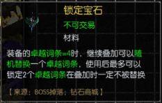 当装备词条达到最大数量后,继续叠加可以随机替换一个卓越词条,玩家可以使用锁定宝石来将自己想要保留的属性锁定,被锁定的词条将无法替换。单词叠加最多可以锁定两个词条,词条替换建议大家在高阶装备时使用。