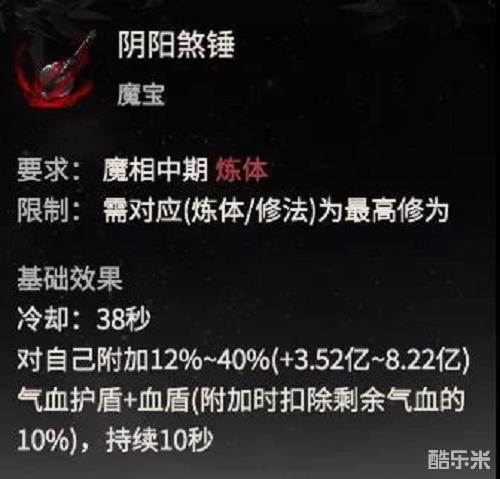 1.在大乘的仙魔法宝出来后,魔体的阴阳煞锤还是有一定可玩性。