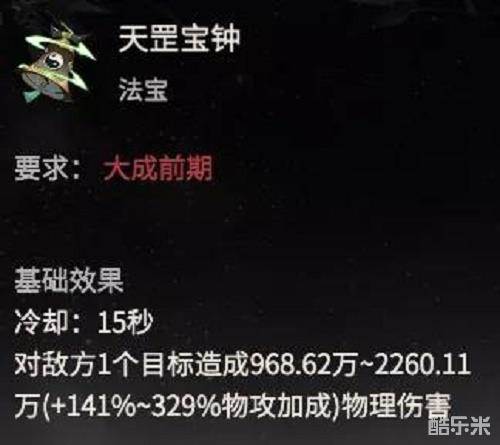 6.因为体修的法宝钟的特殊性,它可以提供足够的输出,相对于法修的雷符,钟的伤害加成高了40%-50%(祭炼等级95-115区间)。