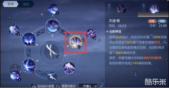 优先1技能(魂心)与3技能(轮转),增加天忍的伤害与存活能力