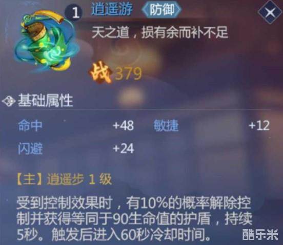 生存类:主秘籍选择逍遥游,在被控制时有概率解控并且获得一个护盾,团战期间可以更有效的提高生存能力,且该秘籍前期通过活动可以获取,获取难易度较低。