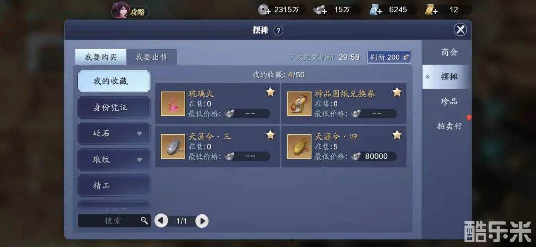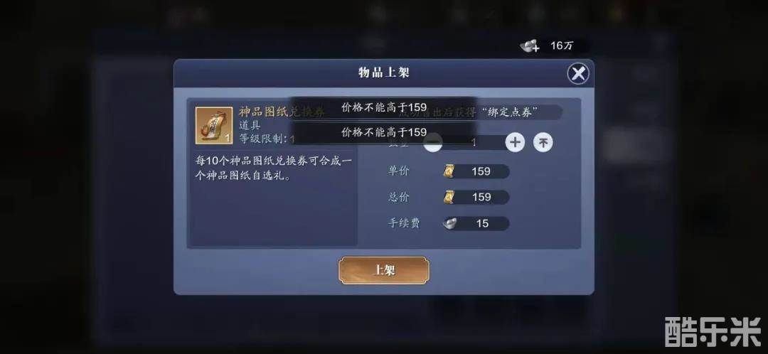 2)不绑定的图纸碎片可以上架银两/珍品商店,最高价8000银两和158点券。