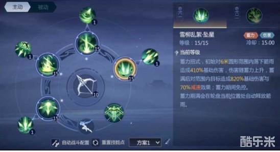 副本奇穴主要追求的极致输出将伤害发挥到最大,技能中的闪避位移技能可以适当放弃。起手吹雨最大可能的将小鬼和首领聚集在一起,流转/千树造成伤害并眩晕目标,眩晕期间坠星蓄力造成高额伤害(坠星前有爆发开爆发)。