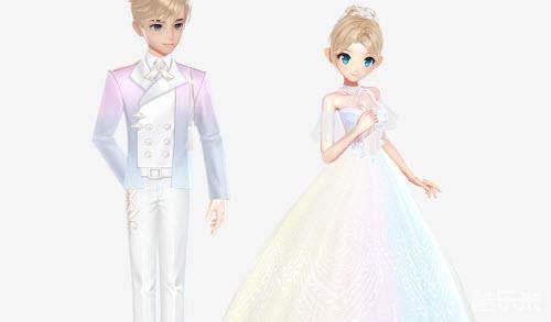 3、男生浅亚麻色的利落短发配上三七分的刘海,发梢微微卷起为少年添上一丝活泼的青春气;女生如彩虹般梦幻的的纱制长裙落地夺人眼球,让优雅不再局限于单色彩,胸前和袖口白纱则显得裙子更加大气。