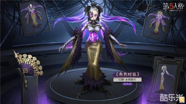 灯火辉煌的大都会里,最不缺的就是形形色色的演出,但红蝶-永夜极光却永远是最耀眼的主角,登台表演的她以美人相示人,精致的妆容,华丽的装束瞬间便能牢牢吸引所有观众的眼球,材质独特的演出服折射出极光般的迷离色彩,与她惊艳全场的表演交相辉映,金色的裙摆和披肩搭配柔软舒适的绒毛,营造出富丽堂皇的尊贵气质。但当你仔细观察红蝶-永夜极光的脸部,却能发现几道异化的痕迹,也为她增添了几分破碎的美感。