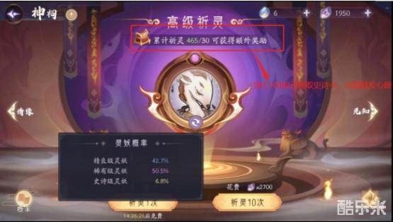 1.30抽必出史诗,90抽必出心愿(100抽送的随机灵妖也能触发心愿单)