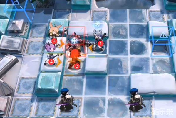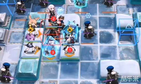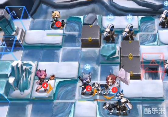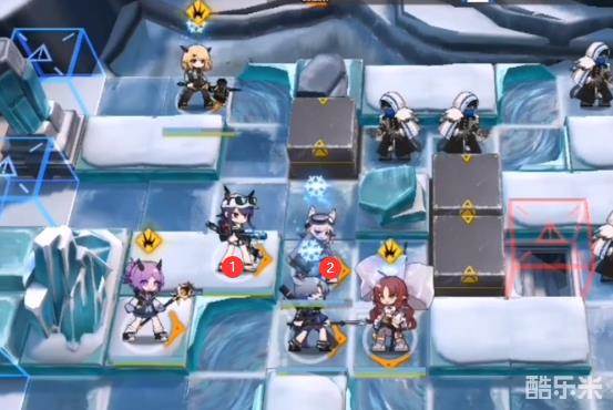 开局如下图所示布置:双先锋拍门 → 克洛丝(向右)→ 芙蓉(向右)