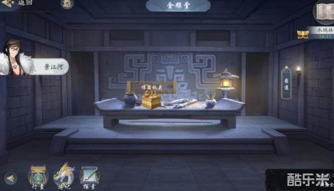 19.第十九步,退回十二连环坞,进入金雕堂,打开信箱,捡起桌面书信,跟景江河聊天