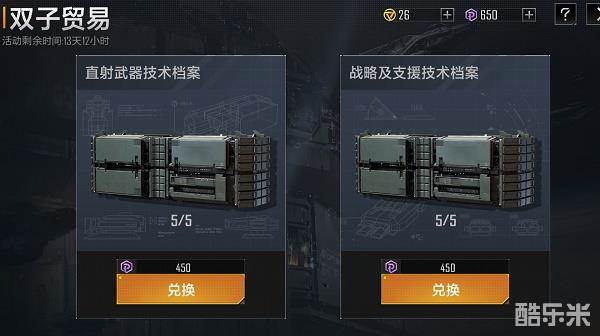 1.最后是双子贸易活动,直射武器技术档案和战略及支援技术档案,单价都是450比邻星币,技术档案对蓝图进行了归类和优化,类似于其它游戏的up池,这两个池子总的来说还不错。