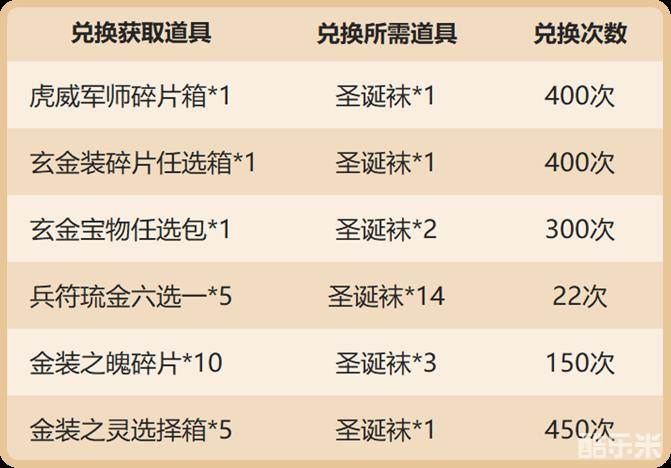 「圣诞袜」可用来兑换虎威军师碎片箱、玄金装碎片任选箱、玄金宝物任选包等稀有资源: