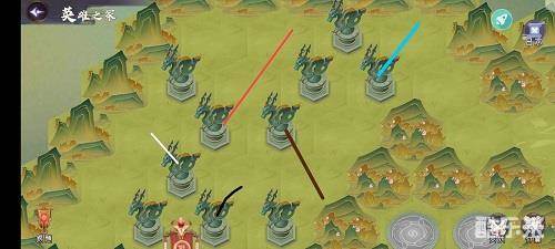 1、先推黑色线条的石像,在推白色线条的,然后把红色线条的石像推到顶,在把棕色线条的往斜下推,最后推蓝色就好了。