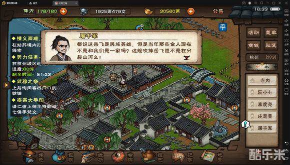 杭州(25,9)触发剧情,进入岳王庙(23,9)对话,老者被打伤