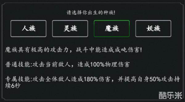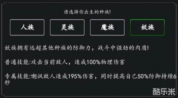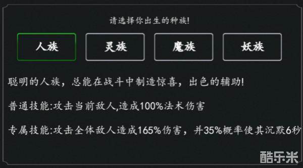 人族:中后期选手,前期会比较弱势。当有一定装备后,人族在挑战boss,有独特妙处。种族技能为沉默效果,谁用谁知道,特别中后期,大部分挑战都在比拼谁能更高效的进行技能释放。