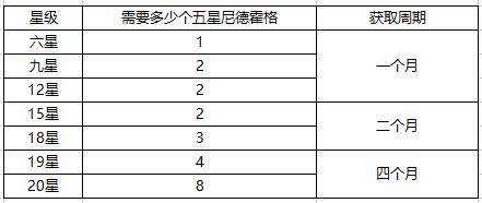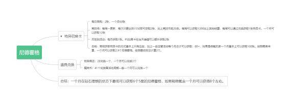 在知道每月固定可以获取多少后,再计算一下假如把尼德霍格升级到20星需要多少资源。理想状态下基本上四个月左右就可以把尼德霍格完成毕业。但是在培养过程中需要比较难得是“养料”的选择,如果选择错养料周期可能无限拉满。个人比如推荐的养料是:伊丽莎白和萨利斯特。所以在平时也要注意这二个探员的收集,在升级选择五星探员的时候尽量选择梅菲斯特这一探员。