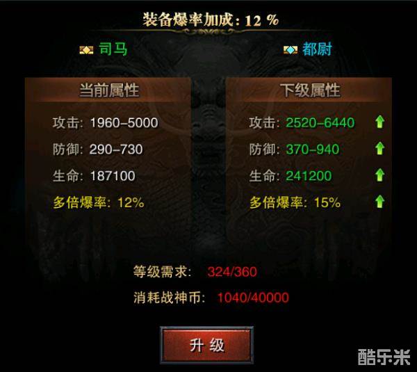 玩家的官职等级越高可获得爆率加成越高,爆率加成直接提升人物击杀BOSS极品掉落概率。升级官职需要达到一定的等级和使用战神币,玩家可通过官位副本或者其他地图获取升级道具。