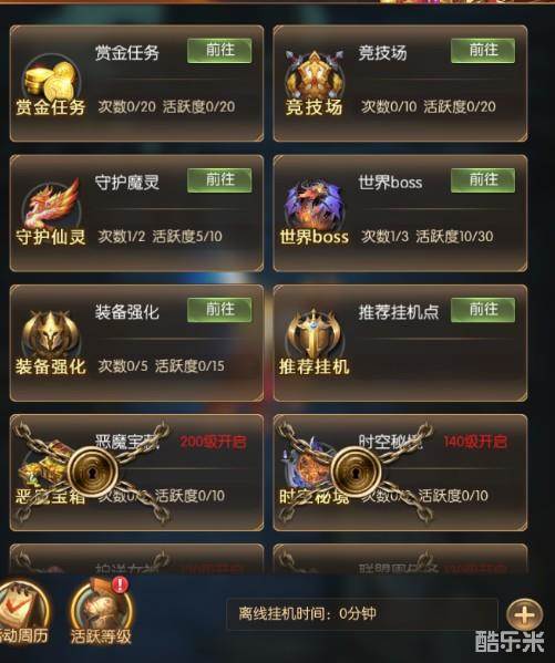 前期主要进行金币和材料的积累,为后期获得强大的装备升级强化做准备