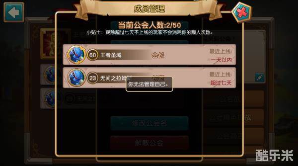 1、每个工会会长如果3天不登录游戏,会长的职位会转让给公会内的其他成员,如果该公会有长老则会优先长老。