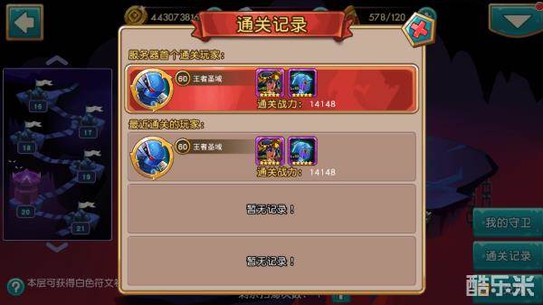 8、每层通关都会有通关记录,分为服务器首个通过玩家和最近通关的玩家。