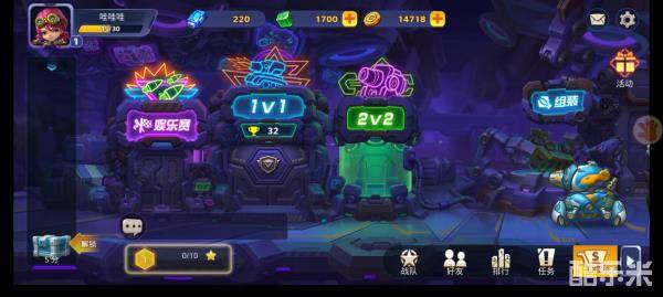由于刚上来只有一台机甲战车。所以也只能选择2V2组队赛,等抽取到3辆战车后就可以参加竞技场的1V1对战和首领战了。