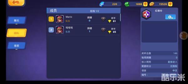战队页面显示一些基础信息。如队员奖杯数,级别,加入限制等等。
