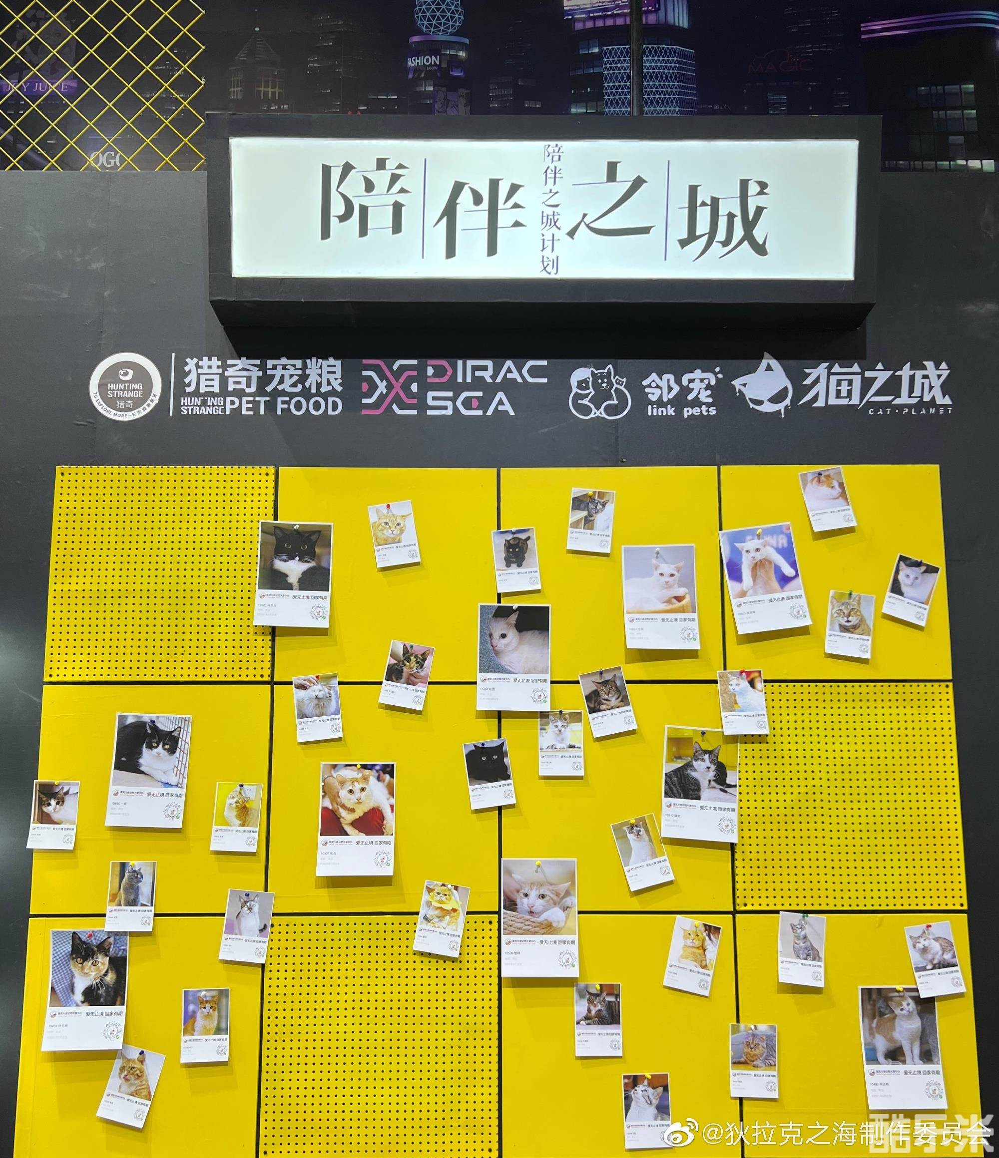 线下活动现场的猫咪领养墙,无数可爱的猫咪正在等待它们的主人。