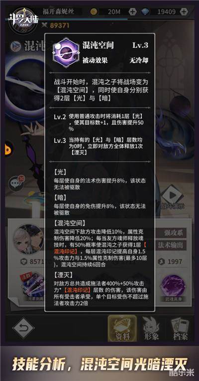 最后,我们来看看《斗罗大陆:武魂觉醒》混沌之子的技能情况。混沌之子定位于后排群体AOE和对敌方削弱,最能展示这个特点额则是“混沌空间”技能。