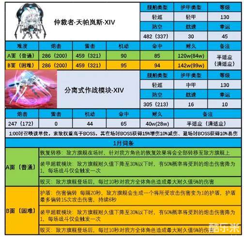 BOSS输出及对前后排威胁:BOSS输出由炮雷组成,但鱼雷伤害并不多,对甲补正轻>中>重;此次BOSS对前后排威胁都有所降低,对后排的伤害仅来源于空袭支援和词条毁灭的百分比扣血,战斗至结束后排会大残但不会减员。