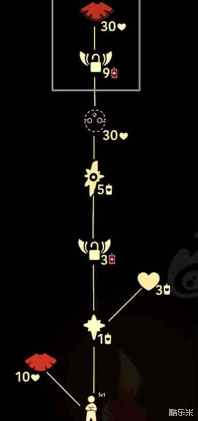 如图所示,玩家可以花费30个爱心,然后在这个叉手这个先祖这里,兑换黑脸面具,需要解锁这个路径才行,还可以得到这个深橘色的斗篷,全部解锁的话需要19个蜡烛、1个升华蜡烛,30个爱心,还是比较多的,不过颜值很高,值得玩家来进行兑换。