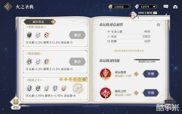 2、以上分别对应三个法典的高级属性,加的战力最多,提升最大,必须优先点,即伤加,减伤,命中,闪避,暴击与抗爆,点完后,从右边红色法典开始加起,筛选职业属性——御四灭四,提升战力值排第二位