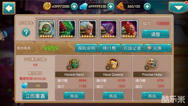 9、不要忘记设定防守阵容,忘记设定防守阵容那么您辛辛苦苦攻打的名次将会被其他玩家所占据。