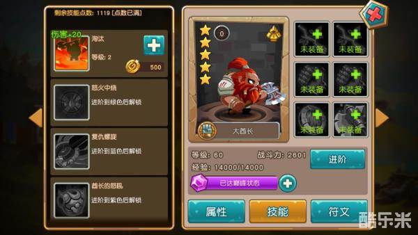 1、升级英雄技能:随着英雄等级提升消耗金币提升技能。