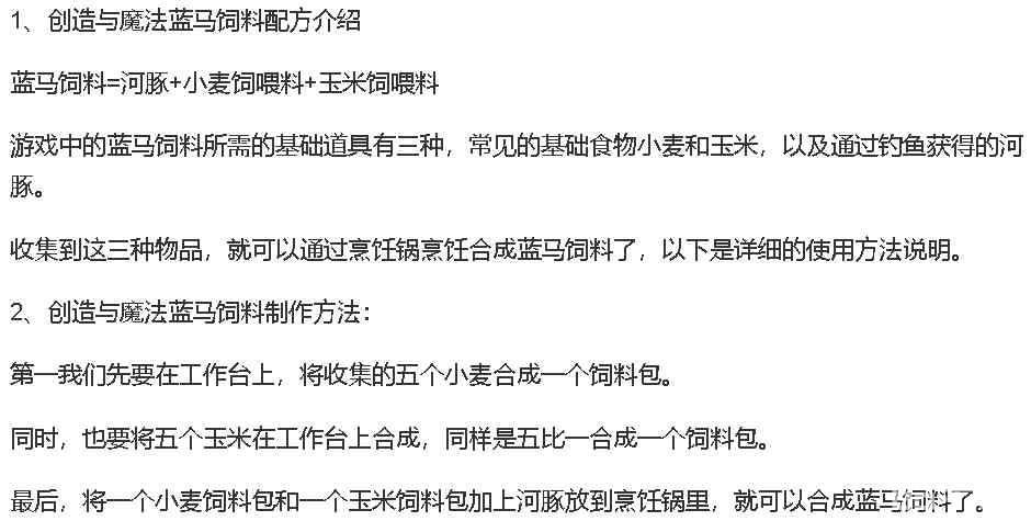 创造与魔法游戏中,蓝马饲料需要十包左右的饲料才能驯服成功。