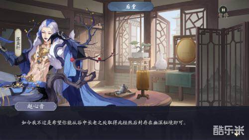 2、进入落英前殿,进入医阁,赵心音(聊天),林巧烟(聊天),陆小遥(聊天),点击座椅闪光点,陆小遥(聊天),开启后堂,捡起桌面突破丹,