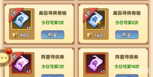 400元宝6张的高级寻侠卷轴是必买的,平均下来只要66元宝一张。